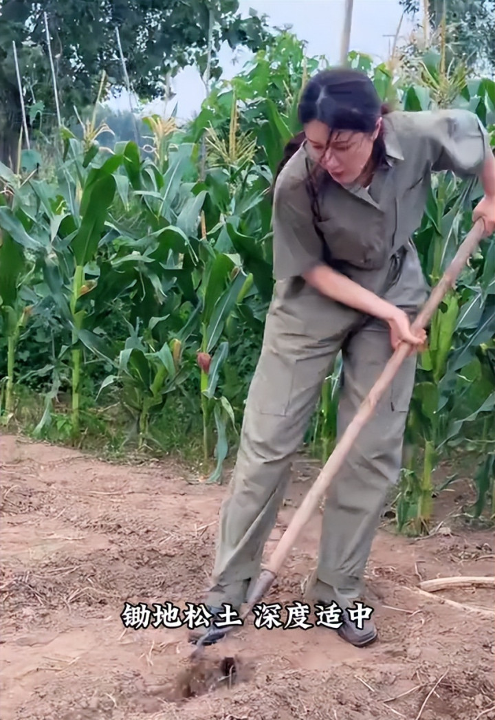 看黎姐拿犁头的姿势就知道这不是摆拍,这熟练程度一看就是经常种菜的选手啊。